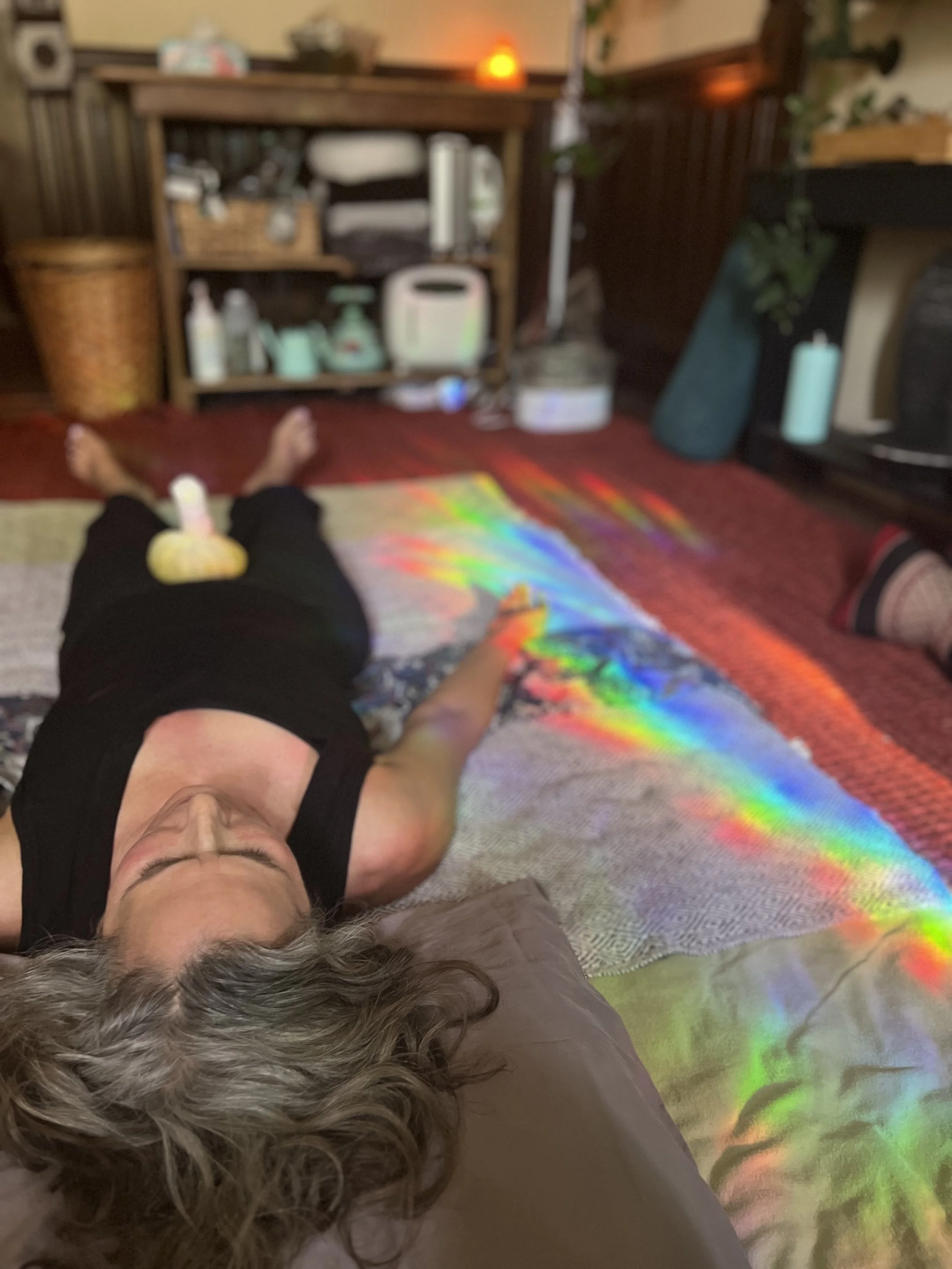 Thai Yoga Massage is an Eastern form of bodywork with roots in Ayurveda and Buddhism that combines gentle rocking, sustained compressions, and dynamic stretching to release stagnant energy along the Sen (energy) lines of the body. Performed clothed, on a mat.